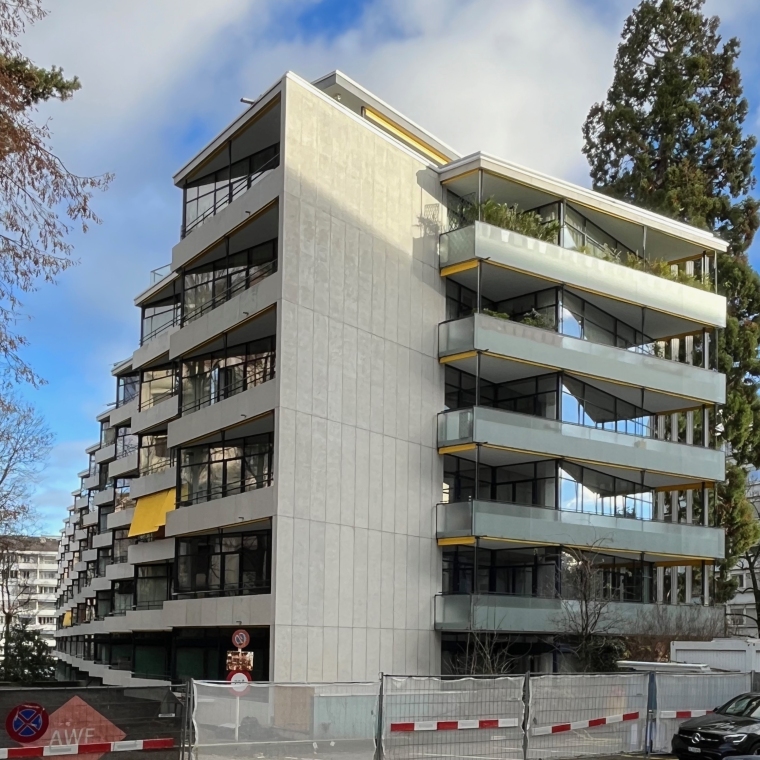 décembre 2023 _ fin de chantier de la restauration de l'immeuble 'miremont-le-crêt' de marc-joseph saugey (1953-1957). réalisation suivie par dcm.