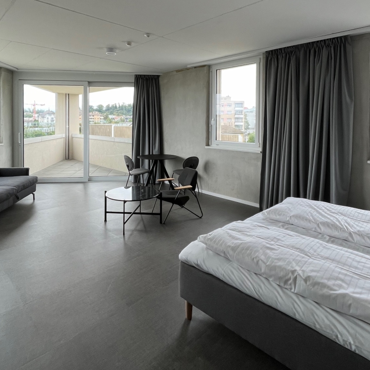 juin 2023 _ proptotype de chambre d'hôtel à chavannes-près-renens, avec des photographies de yves andré.