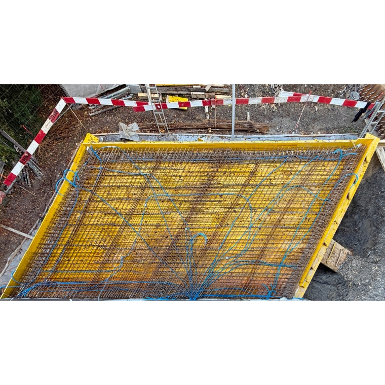 octobre 2025 _ sur le chantier de la véranda à conches, la dalle parallélogrammatique est en passe d'être coulée.