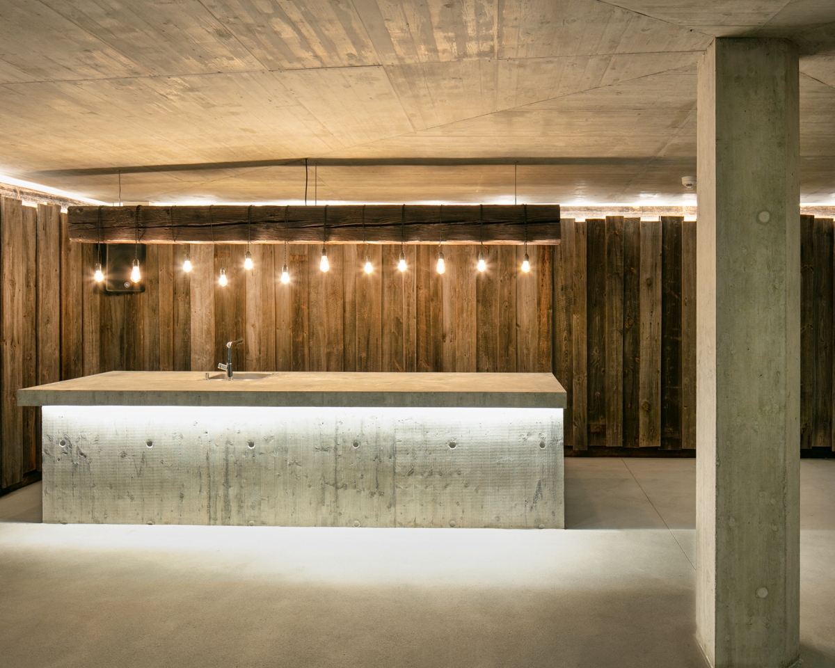 A l’intérieur, le concept de matières marie le bois clair aux cailloux du Rhône clairsemés dans un sol en terrazo et aux agrégats des murs en béton du rez-de-chaussée. Les choix colorimétriques simples accompagnent le parti architectural pour mettre en valeur le contexte et proposer, à chaque saison, des moments de calme et d’ouvertures.