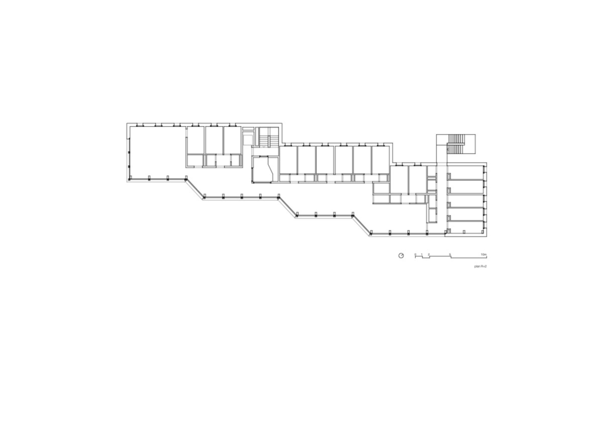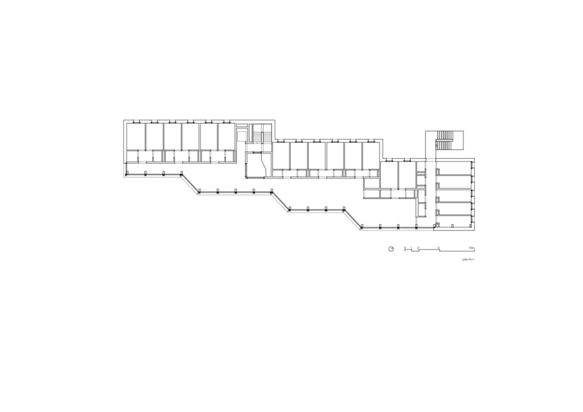 À l’image des établissements de soins pour enfants caractérisant historiquement le lieu, le projet s’implante en étirant une longue coursive vitrée sur la largeur de la parcelle. Ce dispositif typologique permet de profiter au maximum de l’orientation solaire et visuelle offerte par la situation en balcon. De légers déboitements dans le volume génèrent des dégagements vers le grand paysage caractérisé par la présence des Dents-du-Midi. Le généreux espace de distribution tourné vers le sud et les crêtes alpines offre de multiples possibilités d’appropriation pour les groupes qui y séjournent.