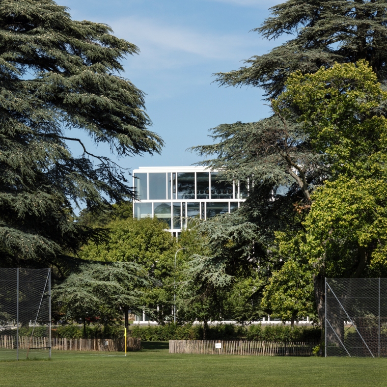 Les aménagements extérieurs s’insèrent autour de l’école avec le même souci de préservation du domaine végétal.