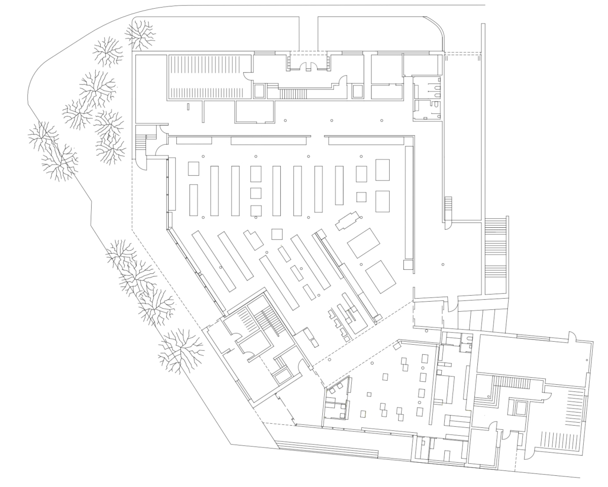 La présence d’un commerce alimentaire au cœur du complexe bâti permet de faire profiter à la collectivité habitante d’un passage entre le chemin des Bossons et la placette à l’amont du « grand pré », espace végétalisé situé à cœur d’ilot. Le magasin, et ses prolongements extérieurs, deviennent des lieux de rencontres impromptues entre les voisins de tout le quartier « Métamorphose », là où se tissent les liens sociaux par le fait de l’approvisionnement quotidien. Au rez-de-chaussée, les accès sont différenciés entre les deux sortes de logements (appartements protégés pour personnes âgées d’une part et logements en location de l’autre) et les activités. Le traitement de toutes les entrées prend en compte la pente « naturelle » retrouvée, celle qui a été éradiquée par l’horizontalité des terrains de sports réalisés au siècle passé.