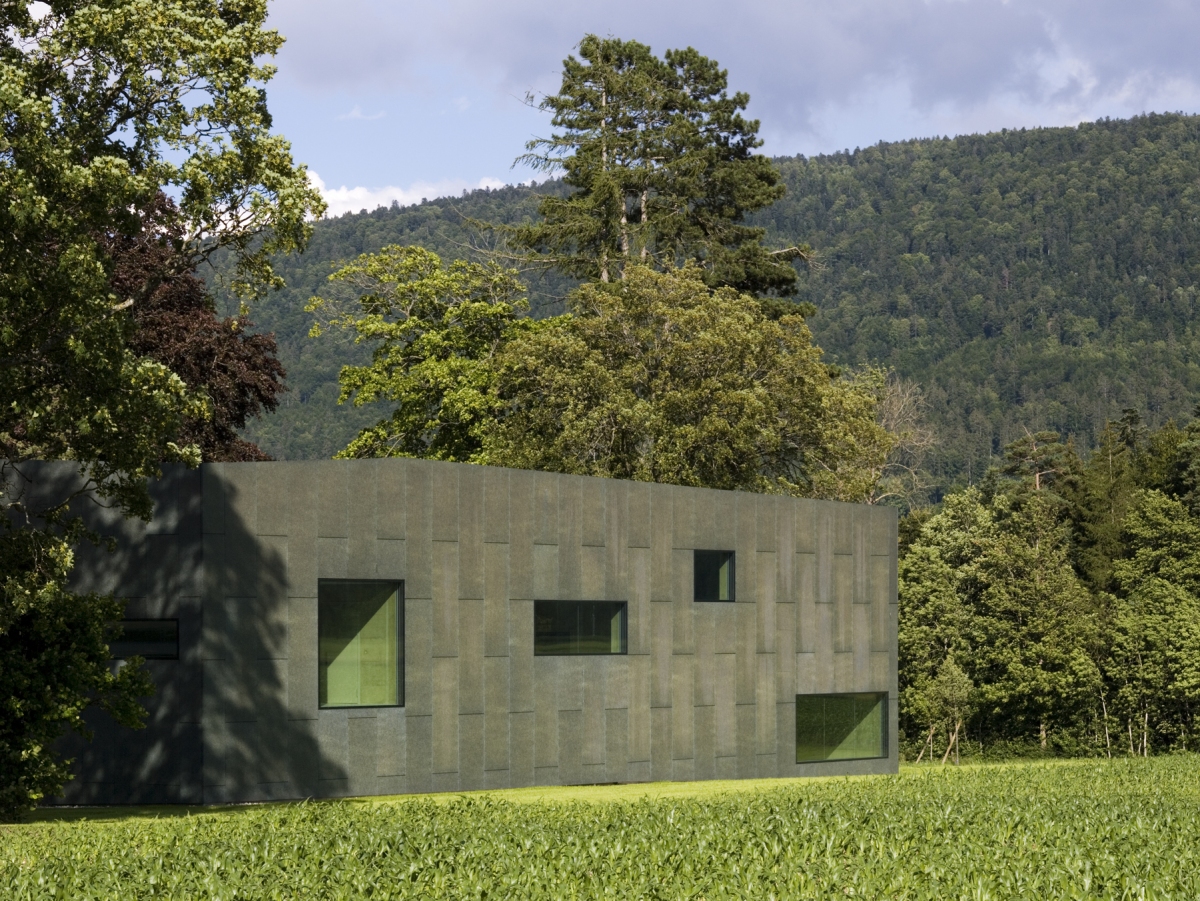 Le cuivre prépatiné est choisi en raison de sa couleur très proche de l’environnement végétal du territoire : des conifères sur les crêtes du Jura et des surfaces agricoles dans la vallée. Le traitement du prépatinage par projection d’acide, permet d’offrir une finition 'vivant' au cuivre, et d’amorcer un vieillissement non uniforme, se rapprochant ainsi du caractère paysager de ce lieu d’une qualité spatiale remarquable.