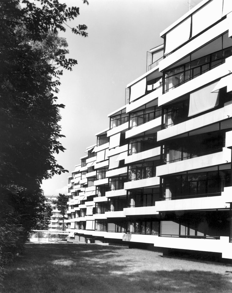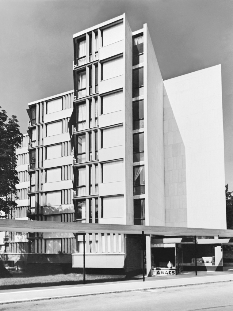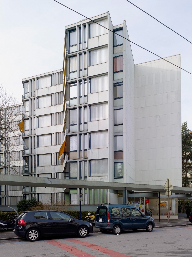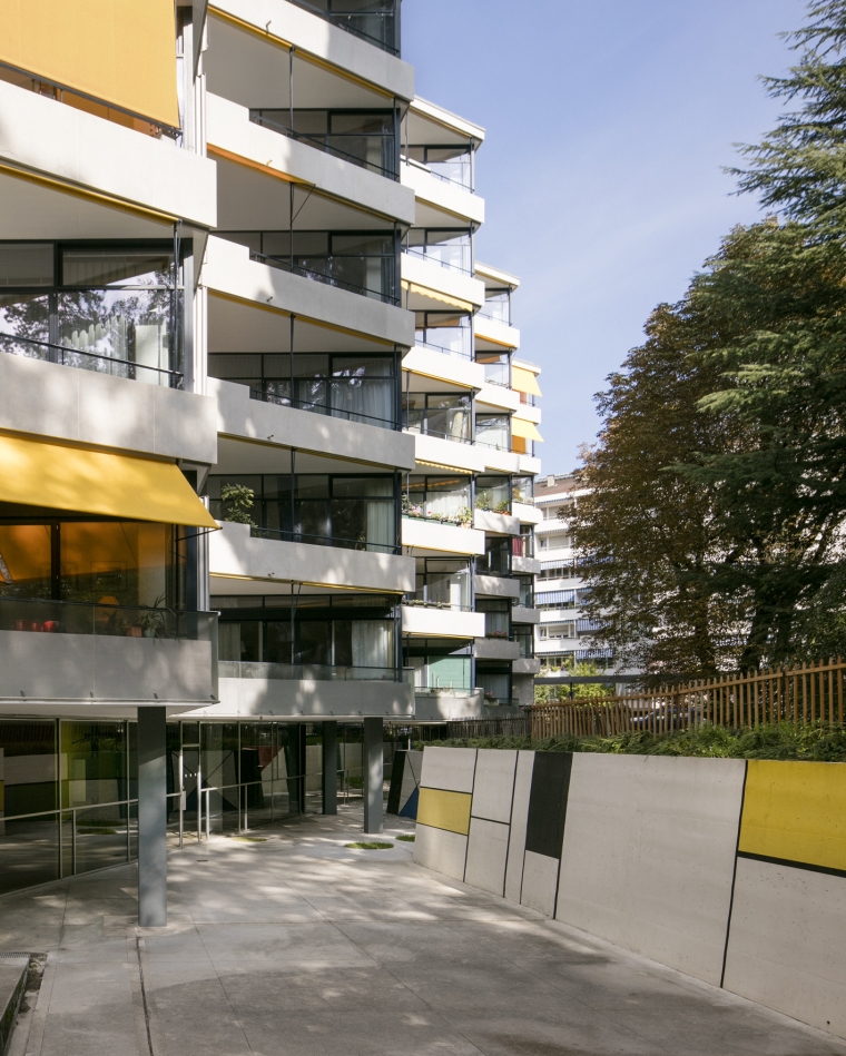 L’immeuble de logements dessiné et réalisé par l’architecte Marc-Joseph Saugey, entre 1953 et 1957, est un des plus beaux exemples de d’invention typologique et formelle en Suisse dans le domaine de l’habitat collectif. Classé au patrimoine genevois, cet ouvrage a été publié dans le monde entier à sa livraison à la fin des années cinquante. Son enveloppe n’avait pas fait l‘objet de rénovation jusqu’à la présente intervention, à part de l’entretien usuel.