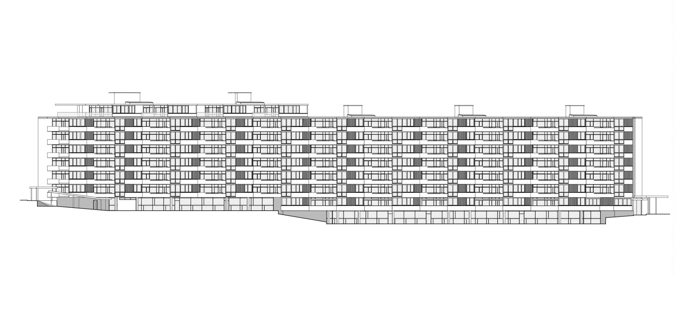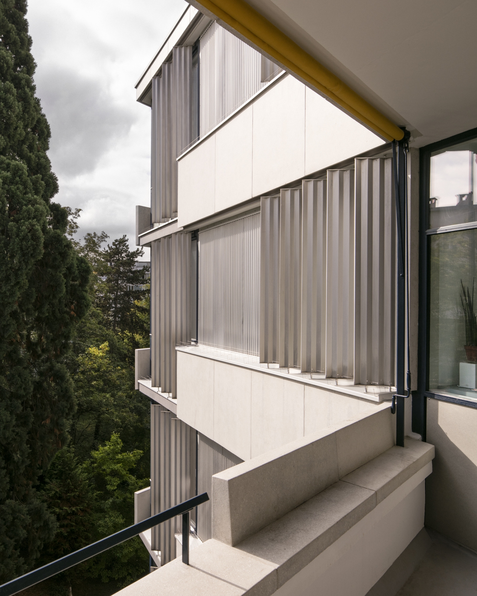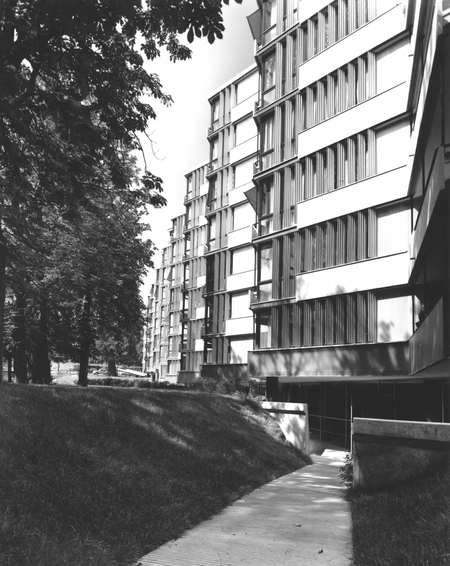 L’immeuble de logements dessiné et réalisé par l’architecte Marc-Joseph Saugey, entre 1953 et 1957, est un des plus beaux exemples de d’invention typologique et formelle en Suisse dans le domaine de l’habitat collectif. Classé au patrimoine genevois, cet ouvrage a été publié dans le monde entier à sa livraison à la fin des années cinquante. Son enveloppe n’avait pas fait l‘objet de rénovation jusqu’à la présente intervention, à part de l’entretien usuel.