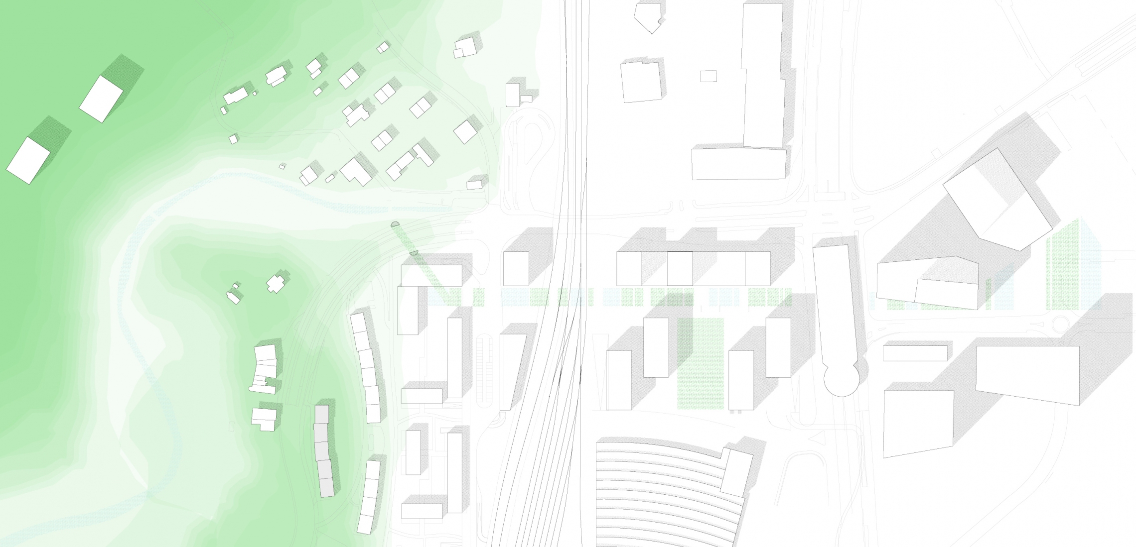 La réflexion urbaine peut aussi se poursuivre sur les voies CFF qui seront un jour désaffectées entre le nouveau quartier du Pont-Rouge et le complexe du stade de la Praille.