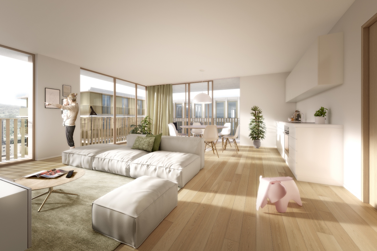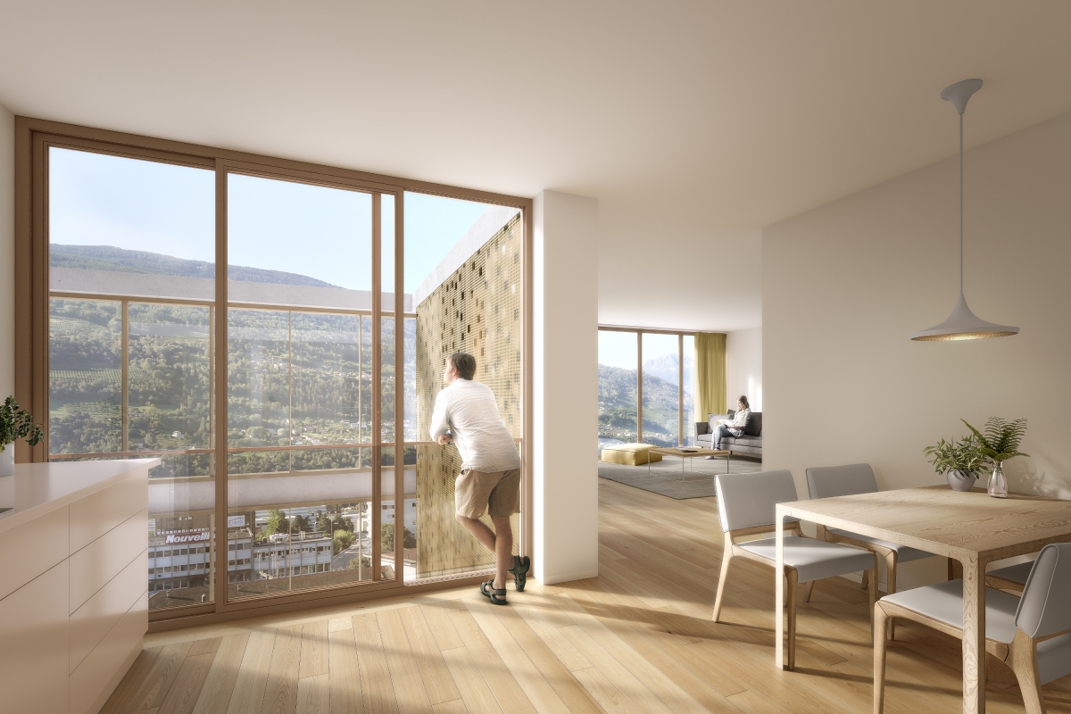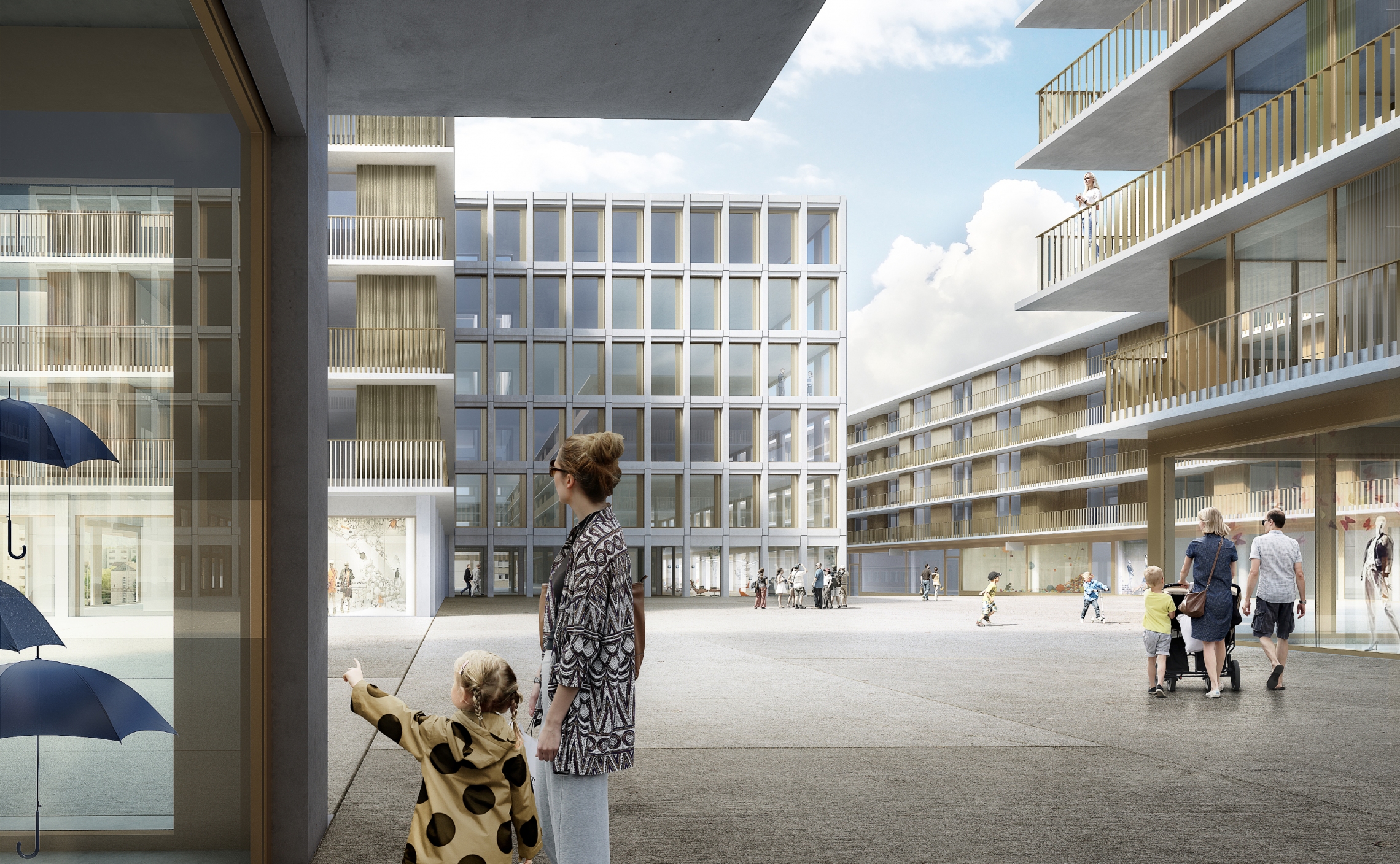 Basé sur un plan de quartier issu du mandat d’études parallèles pour lequel l’agence maa fut finaliste en 2012, le projet comprend une série de six bâtiments dont la plupart sont destinés aux logements collectifs. Implantés sur un rez-de-chaussée artificiel - comprenant deux niveaux de parking pour un total de plus de six cent places - les volumes offrent une grande surface commerciale en rapport avec la gare et le bas de la ville de Sion.