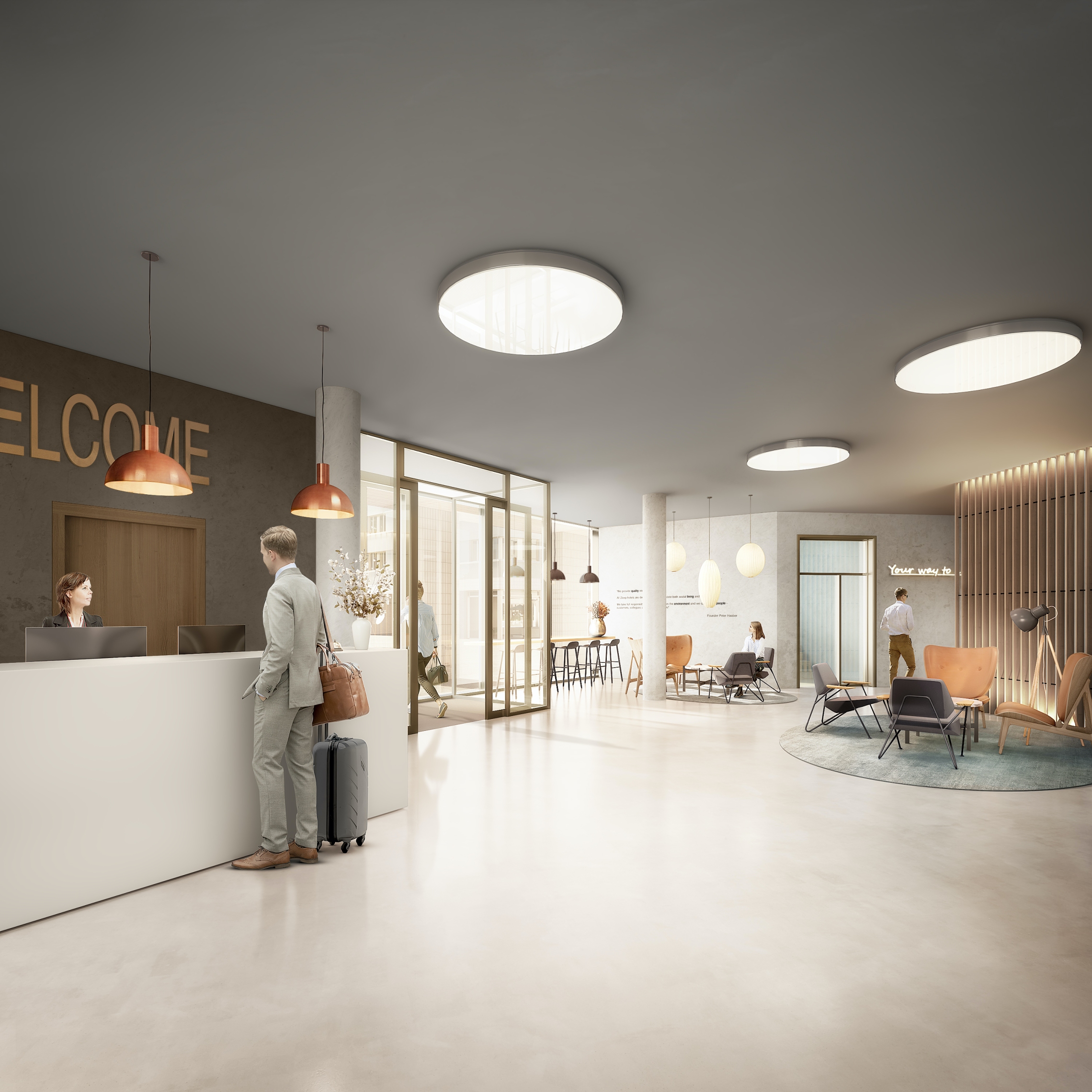 Le projet développé pour l’ilot s’inscrit dans un plan d’urbanisme qui permet de transformer une friche industrielle le long de l’autoroute et proche du centre de Renens en une zone d’activités et de logements. La mise en commun de deux biens fonciers et une réflexion globale sur le site ont abouti à la mise en place d’une volumétrie qui se caractérise par deux édifices distincts quant à leur implantation et leur programmatique. Le premier, au nord-est, sous la forme d’un bâtiment en « Z » qui dégage un maximum de vues, comprend une galette commerciale au rez-de-chaussée et quatre niveaux de logements. Le second, au sud-ouest, est un bâtiment d’activités de trois niveaux dévolu à un hôtel et à la relocalisation d’une entreprise industrielle déjà présente sur le lieu. Une cour ouverte du côté du trafic protège les chambres de la nuisance.