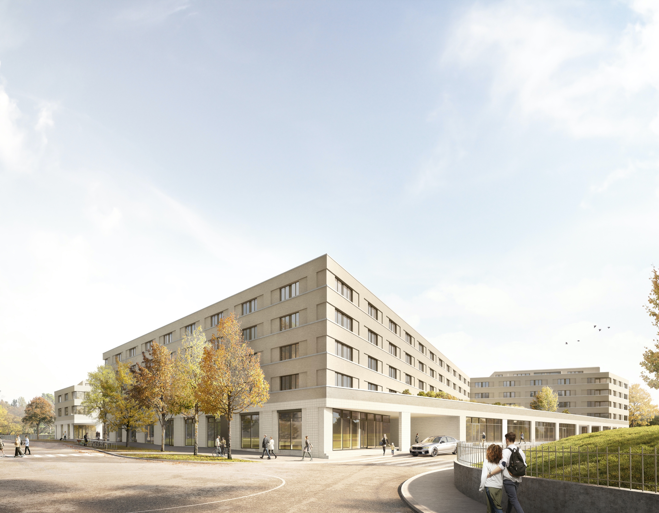 Programme 26 logements PPE, hôtel 140 chambres, résidence étudiants de 290 chambres, commerces, bâtiment d'activités, parking souterrain, jardin public