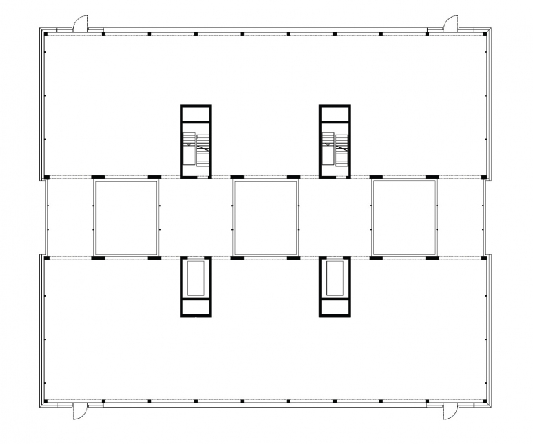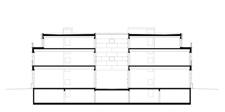 Le bâtiment comprend trois niveaux de surfaces artisanales en liaison directe avec des dépôts au sous-sol. La coupe basée sur un entablement métrique offre trois différentes hauteurs d’étage, la plus importante se situant au niveau du terrain naturel. Le double système distributif situé au centre du projet confère une grande polyvalence dans l’utilisation des surfaces artisanales. La structure porteuse du bâtiment est entièrement en béton armé, et très largement préfabriquée.