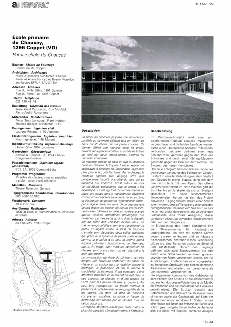 Ecole primaire du Chaucey, 1296 Coppet, mars 2003