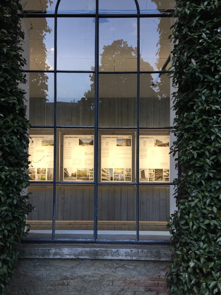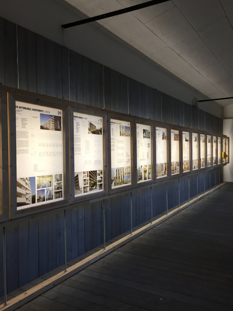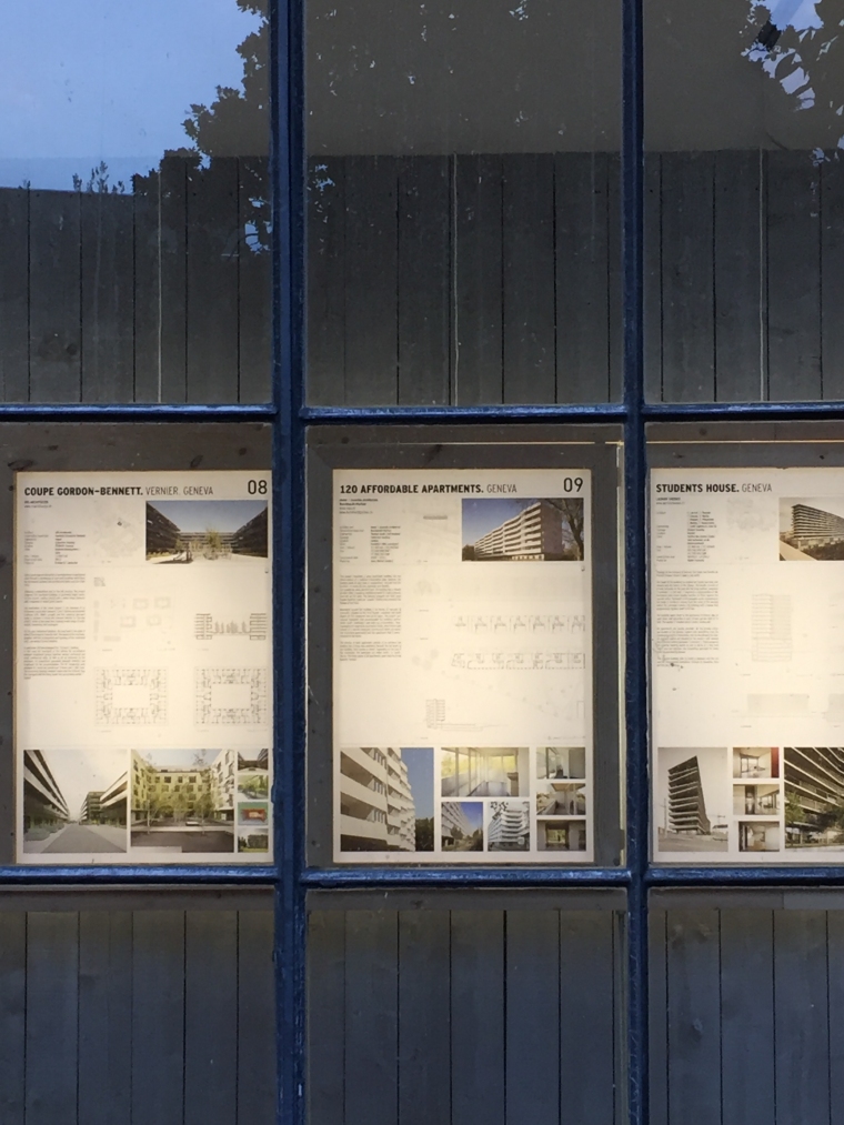 L’exposition itinérante fait escale à lugano au célèbre institut i2a. dans le parc de la villa saroli, le pavillon accueille les panneaux affichant les différents projets genevois du renouveau typologique de ce début de décennie.
